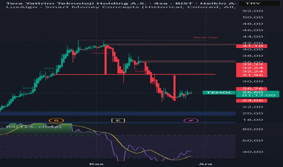 Kırılım sonrası fiyat sert şekilde 24,00–24,50 bölgesine kadar inmiş.