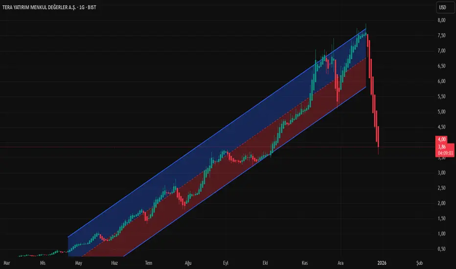 20 Temmuz tarihinde 507TL fiyat bandından aşırı riskli olduğunu belirttiğim ve satış işlemi görünen grafiğimizde TERA için fiyat bandının 3,99$ (174TL) olduğunu görüyoruz.