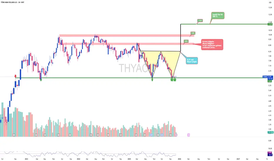 THYAO Bir aydır 2022 den gelen yatay destek civarında geziniyor.