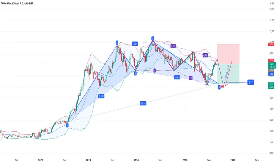 Geçtiğimiz ay 9$ bandında satış emri girdiğimiz THYAO an itibari ile 8,08$ seviyelerine geri çekilmiş olduğunu görüyoruz. Son 3 yıllık performansı fazlasıyla iyi olan THYAO için endesk ağırlığı ve en çok işlem hacmine sahip hisselerin başında yer alması geçen zaman zarfında bırakmış olduğu yüksek kar marjı halen çoğu yatırımcılar için güvenilir liman olarak benimsenmesi ve aylık trendin hala güçlü olması sebebi ile her ne kadar yukarı yönlü hareketler gerçekleştirse de birden çok formasyon gözlemlemek mümkün grafikte.