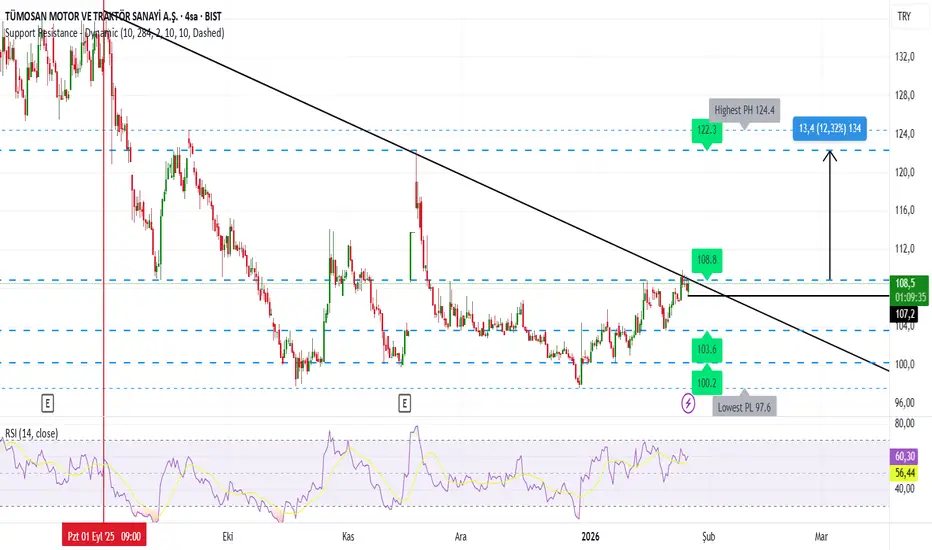 108,80 üzeri kapanışta DÜŞÜŞ TRENDİNİ KIRAR. ilk DİRENÇ 122,30 (%12 MARJ)
