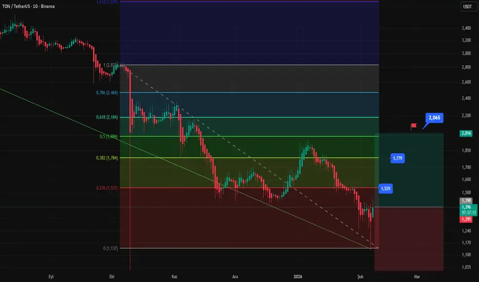 TON Coin an itibari ile fiyatı 1,39$ piyasa değeri sıralaması 25. (rank) 67M$ hacimle işlemlere devam ediyor. Haftalık yeni bir trendin oluştuğunu görüyoruz trend gücüne ve nakit akışına göre gayet güzel kısa da sert hareketler gele bilir. Formasyon hedefi yok DUK gerçekleşti ve düzeltme tamamlandı diye biliriz.