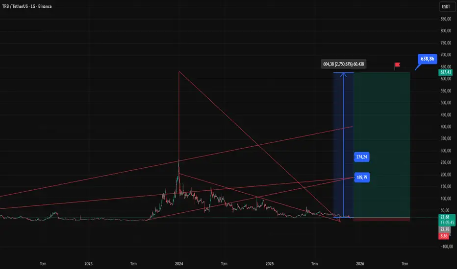 Gemiş yılların spekülatif kriptolarından biri olan TRB coini 23$ fiyat bandından pörtföye ekliyoruz. Teknik görünüm itibari ile aylık süper trende yakın hareketler sergileyen TRB için orta ve uzun vadede yatırım yapıla bilinir seviyelerde olduğunu söyleye biliriz. Haftalıkta momentumun yeni ivme değişmesi OBV de hatırı sayılır kadar hacmin gerçekleşmesi TRB için yeni fiyat hedeflerini aylık güçlü trendine bağlı olarak sert hareketlerin gözlenebileceğini göstere bilir. Bir diğer deyiş ile TRB konsatrasyon değeri, yüksek trend gücü, haftalık momentum ve diğer inikatörlerinde desteği ile yeni sert hareketler yapabileceğinin sinyallerini veriyor.
