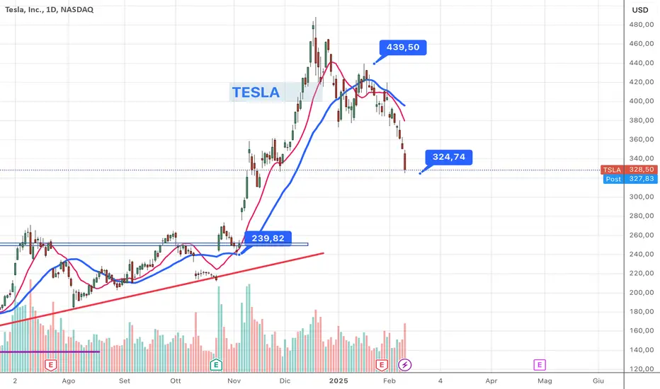 Abbiamo visto un ottimo rimbalzo subito dopo il mio articolo... evidentemente la discesa era "esagerata". La chiusura a 355 ha creato un respiro... tuttavia penso che finchè non recupera almeno 380 dollari non possiamo ritenerci in un ritorno del trend bullish.Elon Musk è molto coinvolto nelle vicende del DOGE e se ci prende gusto e aumenta i suoi impegni allora potremmo rivedere ancora segnali di debolezza sul titolo.