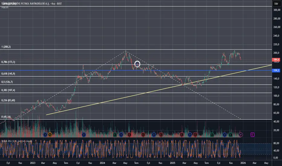 174 altına sarkarsa ilk alım 170 devamında 159 ve 145 ile maliyet düşürüp, Tüpraş elini orta-uzun vadede güçlendirebiliriz.