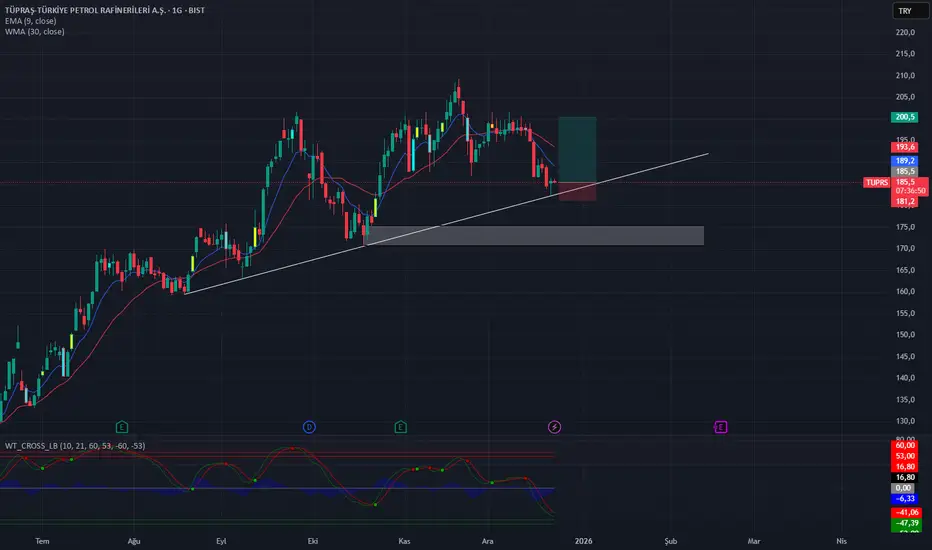 Tüpraş kısa vade trend desteğine geldi, order block aşağıda 170lerde kalıyor. Elliot 3. dalga da tahmini aynı bölgede ama bu seviyeyi yakın stoplu takip edip o seviyelere hazırlık yapmak için çok güzel noktalar.