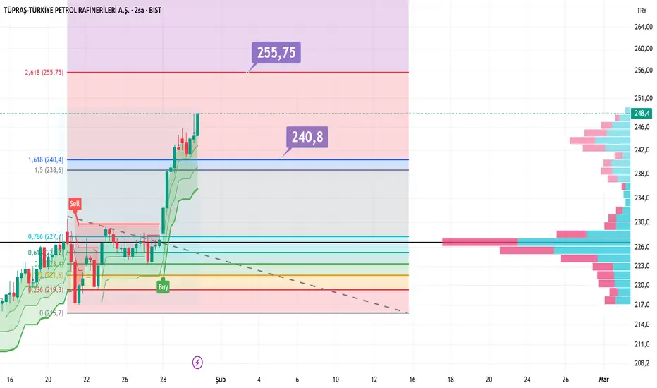 Hacim profili 227 TL'de yoğun alım ilgisi sergiliyor. 240 TL altı seviyelerde alıcı baskısı güçlü. 238,60 TL desteği tutarsa yeni yükseliş dalgası, 248,40 TL aşılırsa 255-260 TL hedefleri devrede. 255 TL için daha büyük hacim gerekli. Rafineri marjları ve sektörel dinamikler performansı yönlendiriyor. Stop-loss 236 TL civarında konumlanmalı. Orta vadeli yatırımcılar için stratejik bekleme pozisyonu öneriliyor.