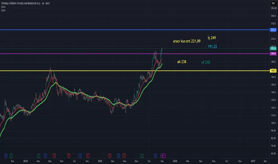 9 Aylık bilanço geldi eder fiyat 191.22.Aracı kurumların ort.hedef fiyatı 221.89.Teknik anlamda çanak formasyonu olmakla beraber çıkışın fibo 1.414 seviyesi olan 190.90 tepki geldi sarı boyun çizgisine yakın yerden onay alarak çanağın boyu kadar olan kısma isabet eden 222.20 seviyesine bir hareket söz konusu.