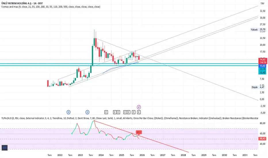 UNLU aylık grafik. bir sıkışma mevcut aşağıda 1 t yakın yakın desteğe uzaklık var.