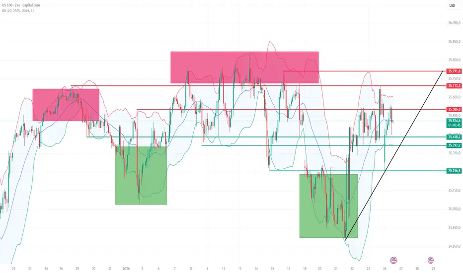 Mevcut fiyatlamalara bakıldığında NASDAQ’ın 25.400 – 25.600 bandı arasında bir sıkışma sürecine girdiğini söylemek mümkün. Bu iki seviye, endeksin kısa vadeli yönünü belirlemesi açısından kritik öneme sahip. Özellikle bu bant içerisindeki hareketler, piyasanın karar aşamasında olduğunu ve yön arayışının sürdüğünü işaret ediyor.