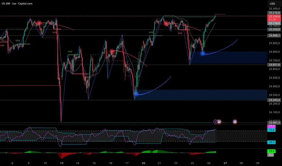 #NASDAQ güçlü toparlanma sonrası 25.200 direncinde karar aşamasında.