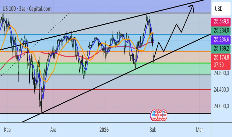 Nasdaq yukselen kama goruntusu mevcut kama destegi ve fibo direnci ayni yere denk geldi.yukselis senaryomuz bu sekilde.kama disinda yada fibonacci destegi altinda iptal olur