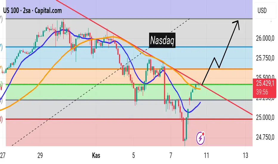 Nasdaq da.kirilim bekliyor kirim gerceklesirse 25530 25630 25760 hedef rakamlari daha uzun periyotta 26k ve uzeri