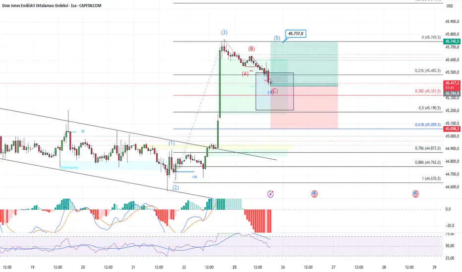 Us30 bu kanal içinden tepki alabilir. Şuan olduğu abc düzeltmesini tamamladığından kaynaklı buralardan tepki gelebilir zorlarsa sonrasında 45338 45207 seviyeleri de takip edilebilir alım için . 45060 altında saatlik kapanış analizi iptal eder