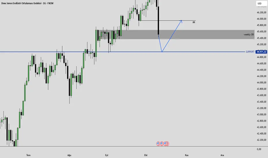 Haftalık Orderblock un kırılması sonucu 44.975 seviyesinde ki desteğine kadar baskı devam edebilir