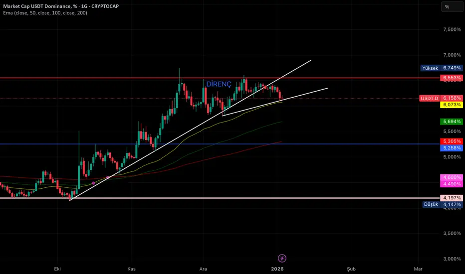 Eğer kırmızı yükselen trend aşağı kırılırsa ve kalıcılık sağlanırsa Bitcoin tarafında bir hareket alanı açılabilir diye düşünüyorum belki de o beklenen 98K bandına gidilebilir. Zayıflık oluşuyor gibi geliyor bana göre göreceğiz..