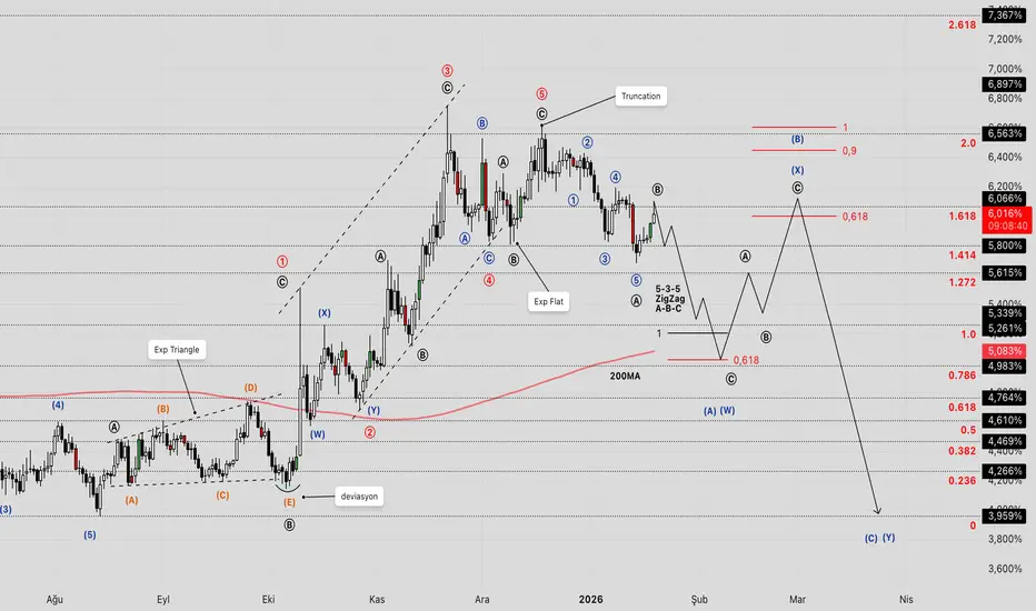 (B = Ax 0.618-0.786 retrace sonrası devam düşüşü 3lü olur = Ana yapı WXY)