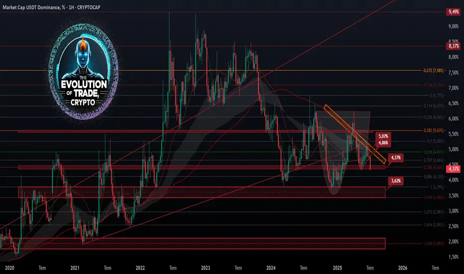 Düzeltme gelecek ise 4,93% seviyesine ilk olarak bir düzeltme yapar, red yemez ise 5,63% seviyelerine kadar düzeltme devam eder. Lakin eklemek istediğim şu var, ben sadece teknik analiz yapmıyorum. Temel analiz ile de birleştirip yorumluyorum. Buna göre kapanış 4,37% seviyesi üzerinde gelse de, USDT Dominance ın önümüzde ki hafta içinde aşağı kıracağını ön görüyorum.