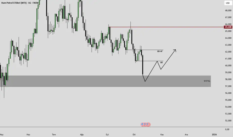 Haftalık kapanışını 58,587 fvg üzerinde gerçekleştirdi buradan alacağı tepki ile 60,684 breaker block bölgemize kadar alım gerçekleşebilir