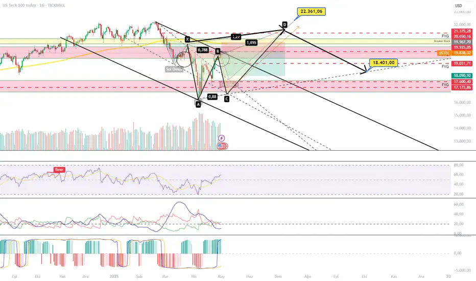 Bad boyumuz Nasdaq uzun vadede günlük anlizden baktığımızda Tobo formasyonunu tamamlarsa yukarı yönde hareketlenebileceği gibi yaptığı harmonik fromasyonla da düşüş yapabileceğinin sinyalii üretiyor olabilir. 22361 bölgesi Temmuz hedefi olduğu gibi 18500 bölgesi Ekim hedefi olabilir.
