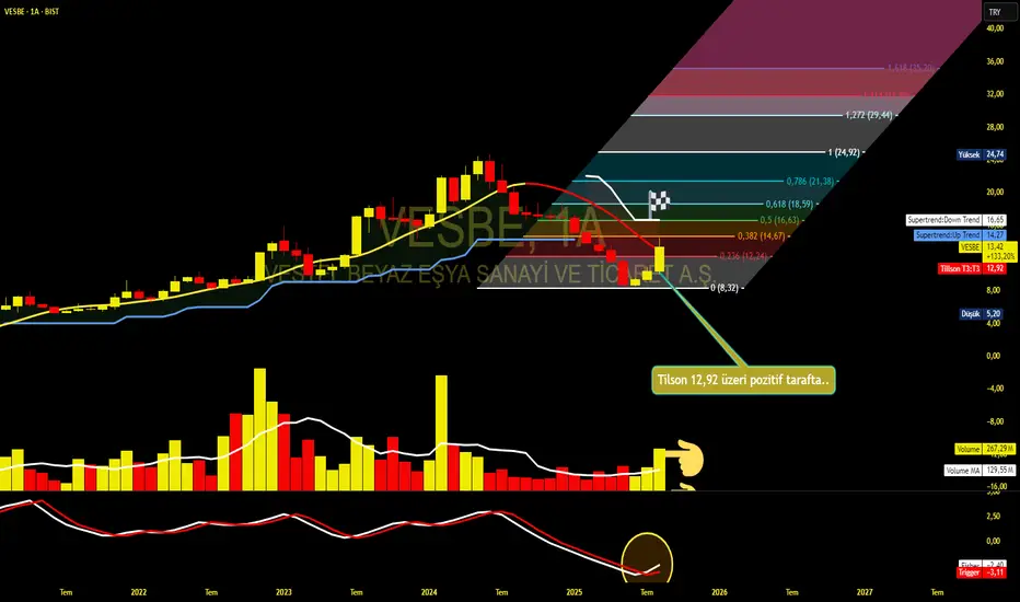 VESBE, uzun süren düşüş trendinden sonra 12,92 ₺ üzeri kapanışla pozitif sinyal verdi.