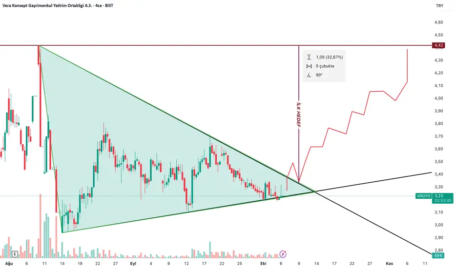 3.23 TL anlık fiyatıyla takibe aldım. Hedefim ilk aşamada 4.42. Sonrasında orayı kırdığında sıralı hedeflerim 5.00 TL 7.40 TL orta vadede. Uzun vade de hedefim ise 16.50 TL.