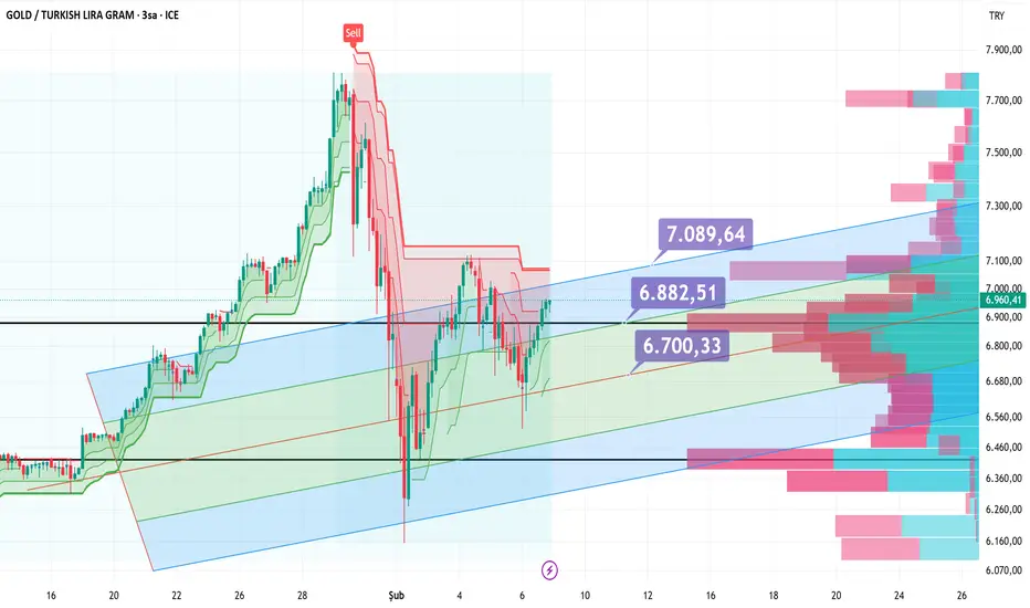 Fiyatın bu seviyeyi kırması durumunda 6.360 TL ikinci destek bölgesi olarak devreye girecek ve bu seviye kanal dışına çıkış anlamına geleceği için trend değişimi sinyali verebilir. Hacim profili analizi, 6.960 TL civarında piyasa katılımcılarının yoğunlaştığını gösteriyor ve bu bölge alım-satım dengesinin belirlendiği kritik bir fiyat bandı olarak öne çıkıyor.
