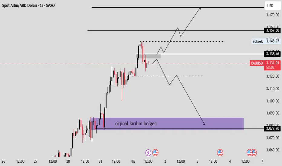 bir önceki analizimde belirtiğim 3.138 seviyesi arz bölgesi halinde geldi, m15 ve m30 üstünde kapanış gelirse yükselişe devam max göreceği seviye 3.176 seviyesidir bende . geçemediği takdirde 1.119 altında h1 de gövde kapanışı gelirse fiyat düşüşe başlayacaktır 3.088 3.053 ve 3.028 seviyeleri gelecektir Y.T.D h1 analizimdir