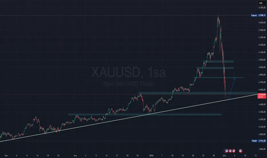 Gerek ons altın ya da gram altın için beklediğimiz alım fırsatı gelmiştir grafiktede gördüğünüz gibi ana yükseliş trend desteğine gelmiş bulunmakta 4500 civarı tüm fiyatlardan alımlarıma başlamış bulunmaktayım.