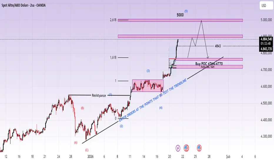 5000 ve potansiyel olarak 2.618 Fibonacci uzantısı, burada yüksek zaman dilimindeki likiditenin bulunabileceği nokta.