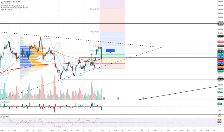 Fiyat 3.378 bölgesine kadar yükseldikten sonra düzeltme yaşadı ve şu an tekrar 3.360 – 3.359 seviyesine tutunmuş durumda.