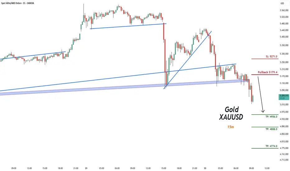 Altın XAUUSD'de (m15) bir işlem sinyali görülüyor.
