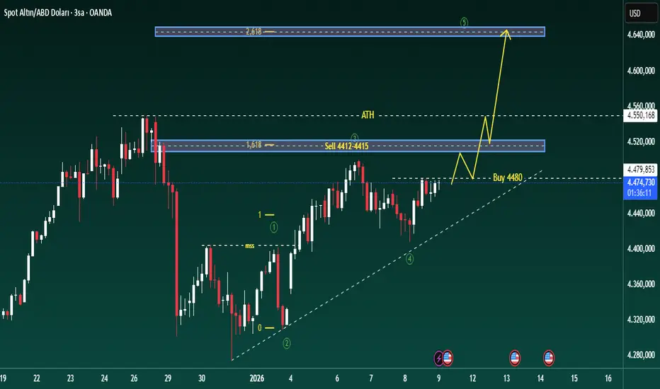 Fiyat 4480'in üzerinde kalırsa → ATH'ye doğru itme girişimleri → 2.618 bölgesine potansiyel uzantı.