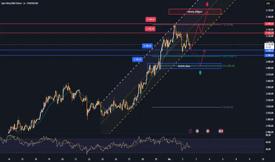 Destek: 3.108 ABD Doları – 3.100 ABD Doları – 3.086 ABD Doları
