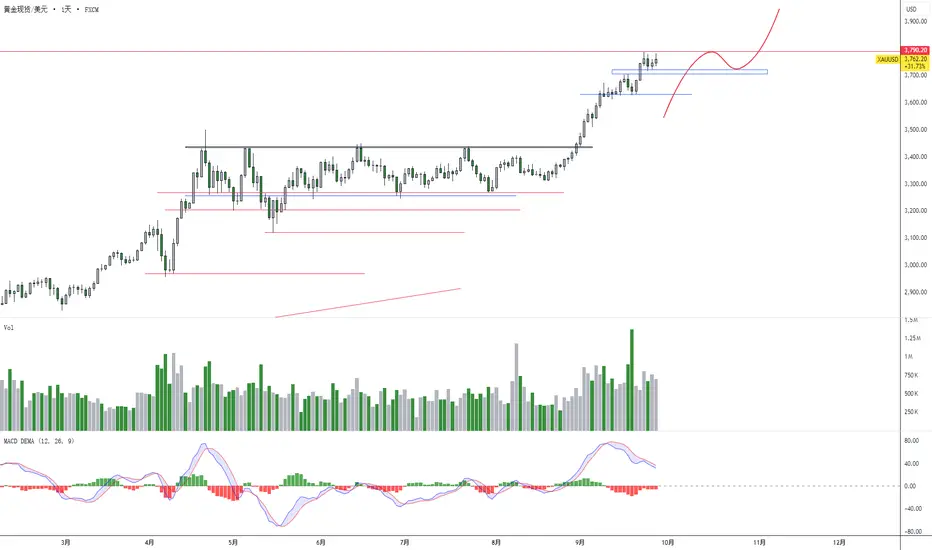 中期背景:当前行情处上涨趋势中的调整周期整理区间3720-3790