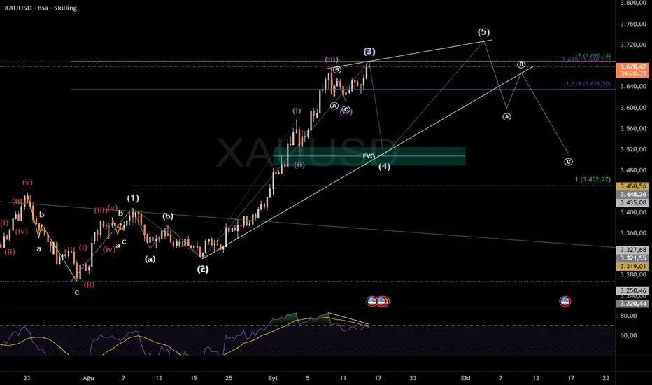 XAUUSD, 5 dalgalı impulsif yükselişin 3. dalgasını tamamlamış görünüyor.