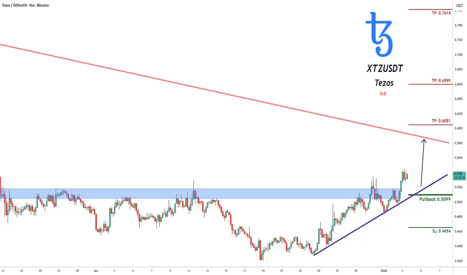 XTZUSDT Tezos'ta (4 saatlik) (spot) bir işlem sinyali görülüyor.