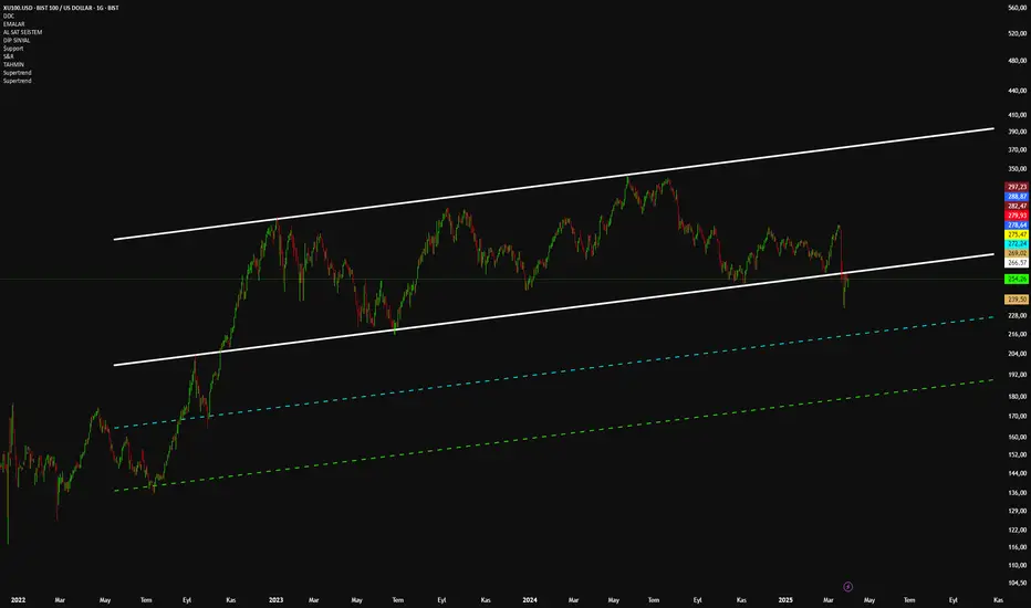 eğer buradan bir re-test çalışmasını yapacak olursa ilk hedefi kırılan kanalın yarısı kadar düşmesi ve mor çizgiye temas daha da derinleşecek olursa tam 1 kanal boyu kadar düşmesi ve sarı çizgiye temas