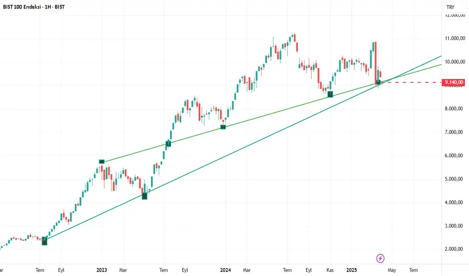 merhaba arkadaşlar, Bist100 de 19 mart siyasi düşüşü sonrası endekste toparlanma süreci devam etmektedir. 11250 hedefine varamadan gelen sert düşüşler ile en dipte 8872 yi test eden endeks, eski tepe direnç hattından destek bulmuştur. 9140 dan geçen bu destek kırılmadıkça Endekste en kötüsü görülmüştür diyebiliriz.