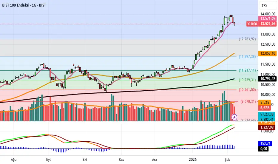 Teknik olarak baktığımızda endeksin güç kaybettiğini görüyoruz. 13 bin 571 altında gelecek müteakip kapanışlar gidişin durduğu anlamına gelir. Daha aşağıda 12 bin 700 bölgesi destek. Son 3 gün satıcılı geçti ve hacmin bu günlerde ortalama altına düşmesi en azından züğürt tesellisi. Momentumda turuncu alarm takip edilmeli. Kırmızıya dönmesi benim açımdan birinci sell sinyali. Yukarı hareket devam ederse birkaç hafta söylediğim orta vade hedefim 15 bin 200. Bunun için jeopolitik risklerin giderilmesi, bilançolarda düzelme ve ABD piyasalarında biraz gevşeme gerekiyor.
