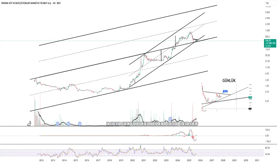 Üst kanal hedefi teknik olarak 500 – 700 TL bandına işaret ediyor (orta vadede).