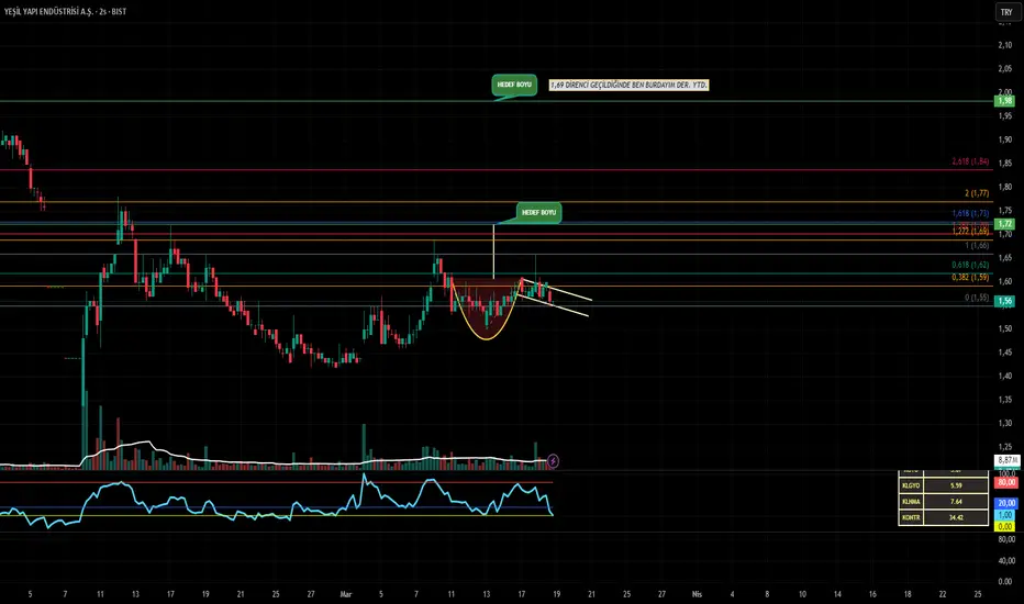 2s'lik grafikte FİNCAN KULP formasyonu bulunduran hissede 1,69 direnci geçildiği takdir de 2.hedef görselde olduğu gibidir. SAFAKHOMETECHNICAL fibo çizgileri destek ve direnç olarak takip edilebilir. ytd.