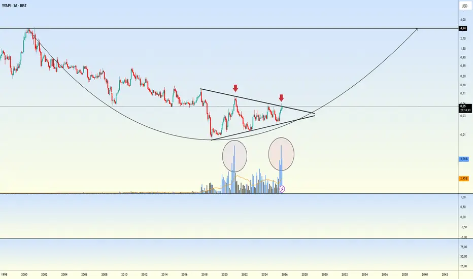 YYAPI Usd grafiğindeki geçmiş hareketini mi yapacak yoksa üçgeni kıracak mı izleyelim.