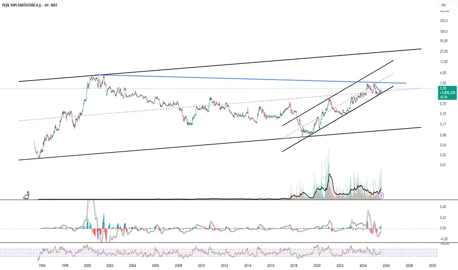 🔹 Uzun Vadeli Büyük Yükselen Kanal (1996’dan günümüze):