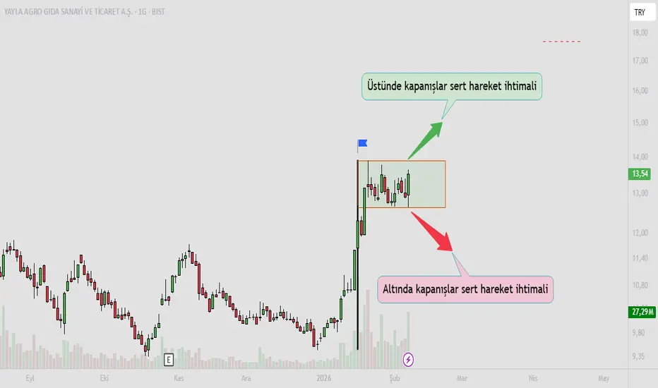 Tepede satışlar derinleşmez. Piyasa yapıcı sert alımı bırakır. Ara ara al sat ile fiyatı yüksekte tutabiliyordur. Buralarda aksi bir durum olmazsa bayrak çıkışı direk boyu hedef olur. Ancak firmada, endekste her an her yerde bir olumsuz durum da olabilir. Bu durumda bayrak altı fiyatlanmalar riskli olacaktır.