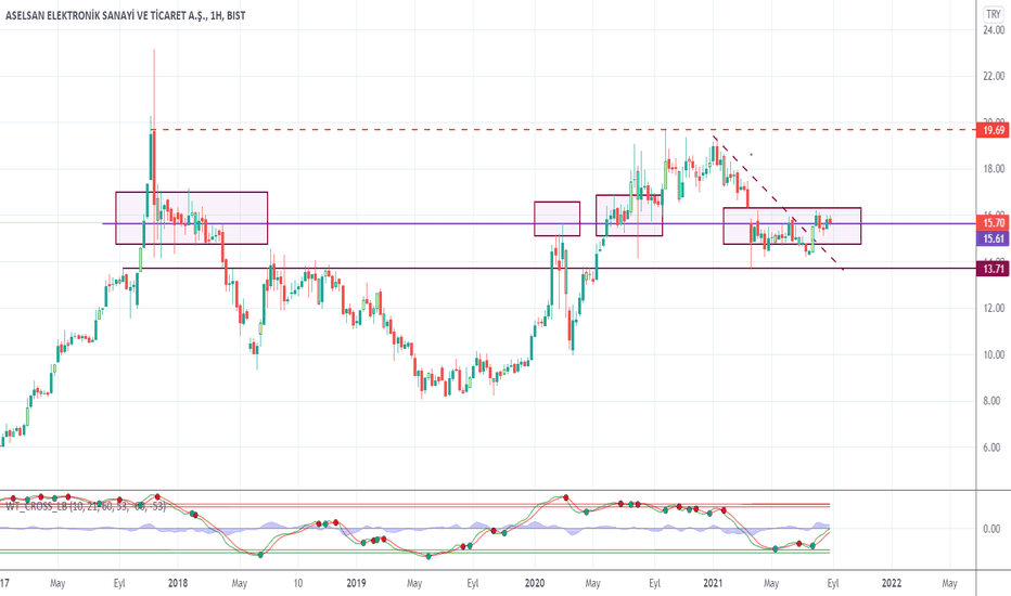 ASELS 20 tl'ye çıkmazsa kanalına giremez bizi üzmeye devam ederUzun vadede baştığımızda 2017den süregelen düşüş, 2021de kanaldan da çıkarttı şimdi yeniden kanala girebilmesi için 20 tl yi geçmesi gerek başka şansı yok (Aşağıda da yükselen bir kanal yakalayabilir.). Kısa vadede biraz daha yükseleceği handle-cup formasyonu ile görünmekte.