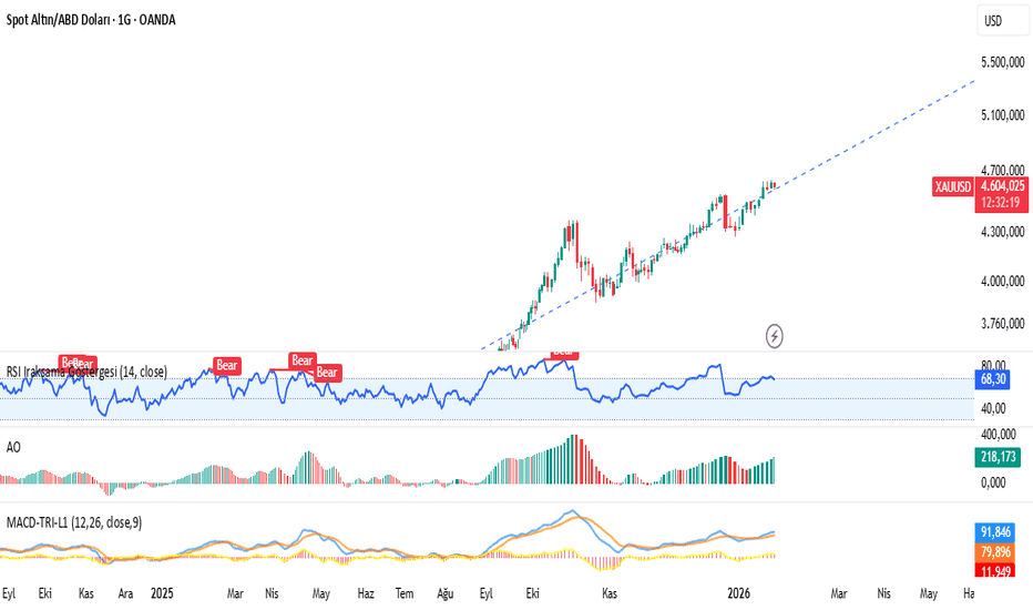 Fiyat, trend çizgisini/direncini kırmıştır ve 4550 civarındaki "alış direnci" bölgesinin üzerinde tutulmaktadır → devam için olumlu bir işaret.