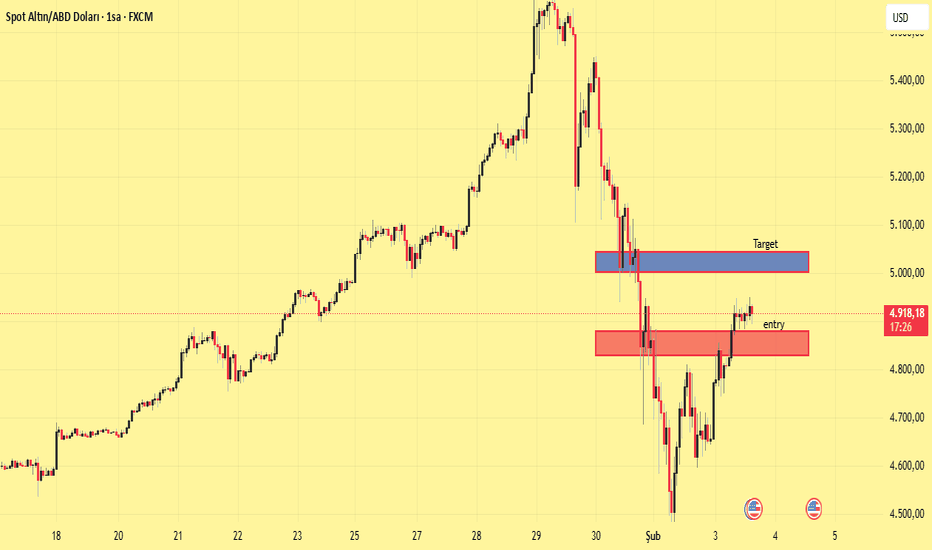 XAUUSD (Altın) – H1 Grafik Fikri ve AnaliziAltın, daha önce güçlü bir yükseliş impulsu oluşturduktan sonra kısa vadeli yapıyı kıran sert bir düşüş yaşadı. Bu agresif satışın ardından fiyat yüksek volatilite gösterdi ve şu anda düzeltme (retracement) fazı içinde, önemli bir arz / direnç bölgesine doğru hareket ediyor.