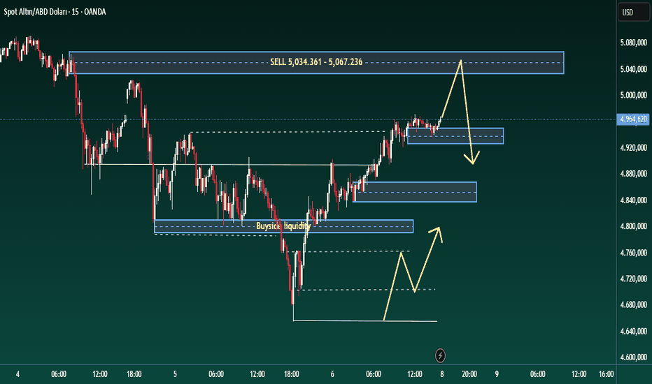 M15 yapısında fiyat, kısa vadeli bir güç göstergesi olarak daha yüksek dipler oluşturdu. Ancak, bu hareket hâlâ daha geniş bir düzeltici aşama içinde gerçekleşiyor, kesin bir trend tersine çevirme değil. 5034 – 5067 aralığındaki üst bölge, önceki dağılım ve intraday direnç ile uyumlu olarak ana SATIŞ likidite alanı olmaya devam ediyor.