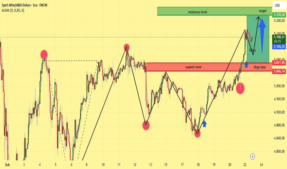 Bu işlem fikri, teknik analiz, destek–direnç bölgeleri ve price action kullanılarak, kontrollü risk ile olası bir yükseliş hareketinden faydalanmayı hedeflemektedir.